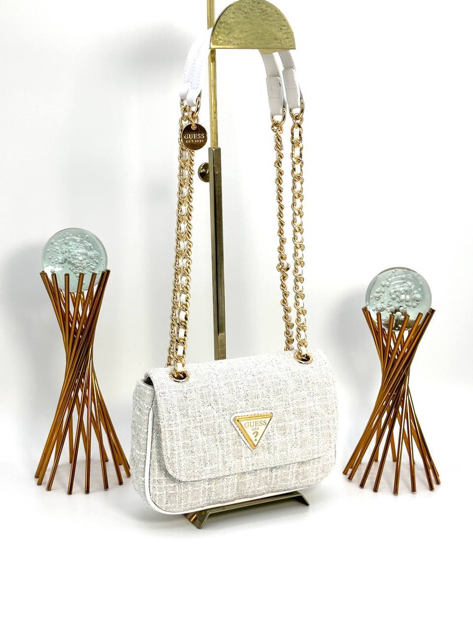 Guess Gri/Beyaz Dokulu Omuz/el Çantası