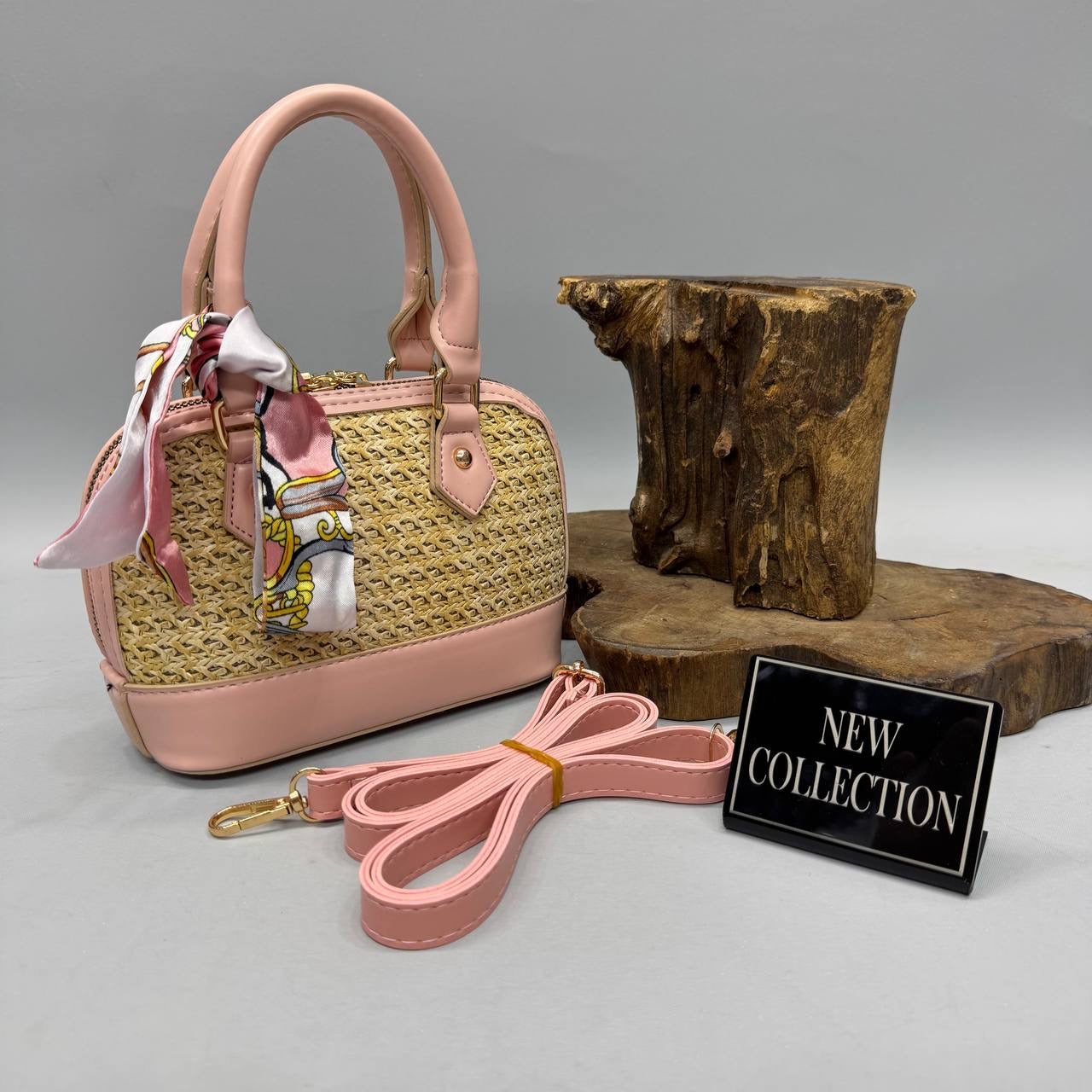 Hasır Detaylı Pembe Kadın Mini Çanta