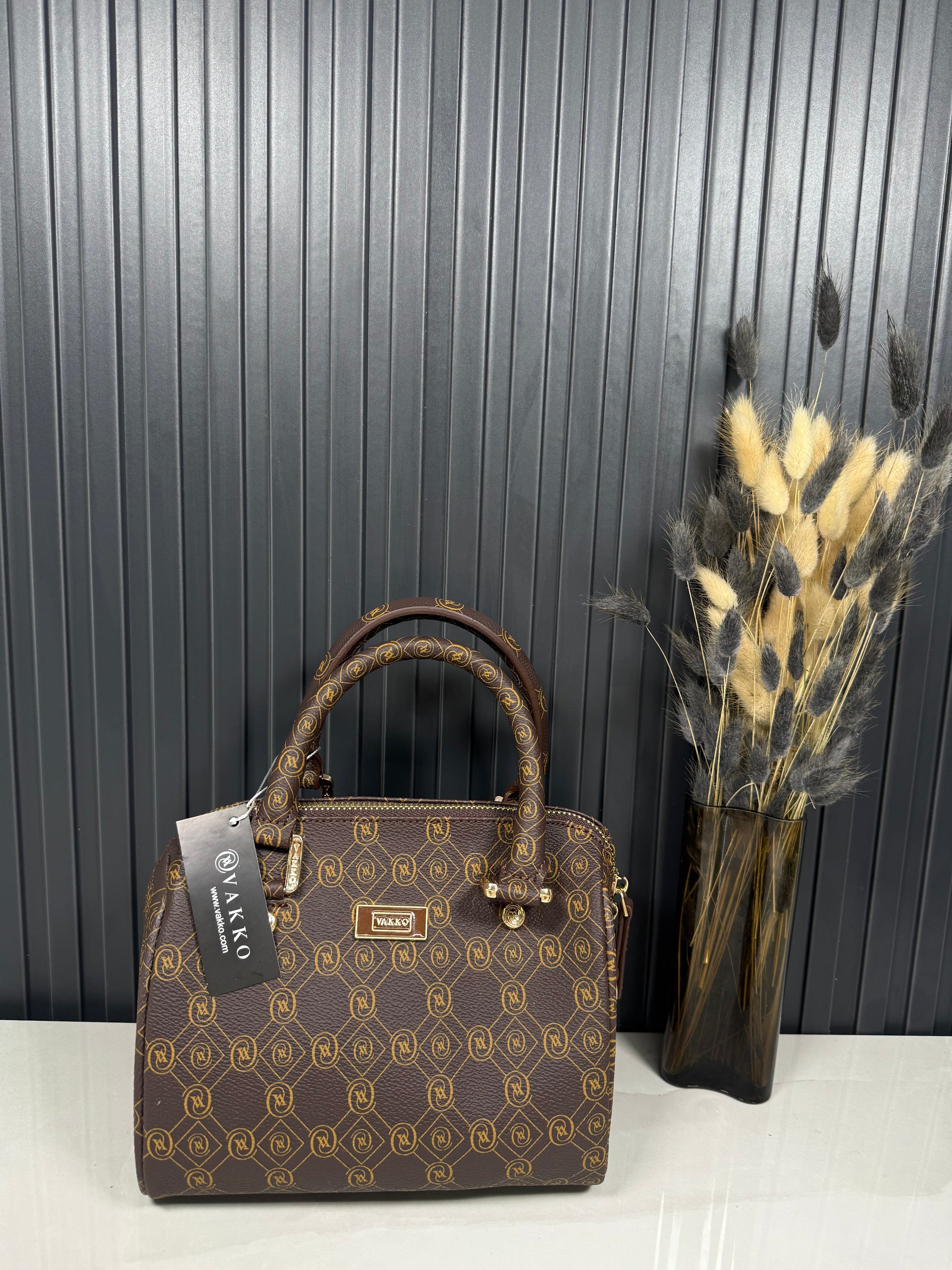 Zarafeti ve şıklığı bir arada sunan Vakko desenli  çanta, günlük kullanımın yanı sıra özel davetlerde de stilinize sofistike bir dokunuş katıyor. Altın rengi detaylarla zenginleştirilmiş tasarımı, modern ve göz alıcı bir görünüm sağlıyor.Her kombine uyum sağlayacak bu özel parça ile stilinizi bir adım öne taşıyın.