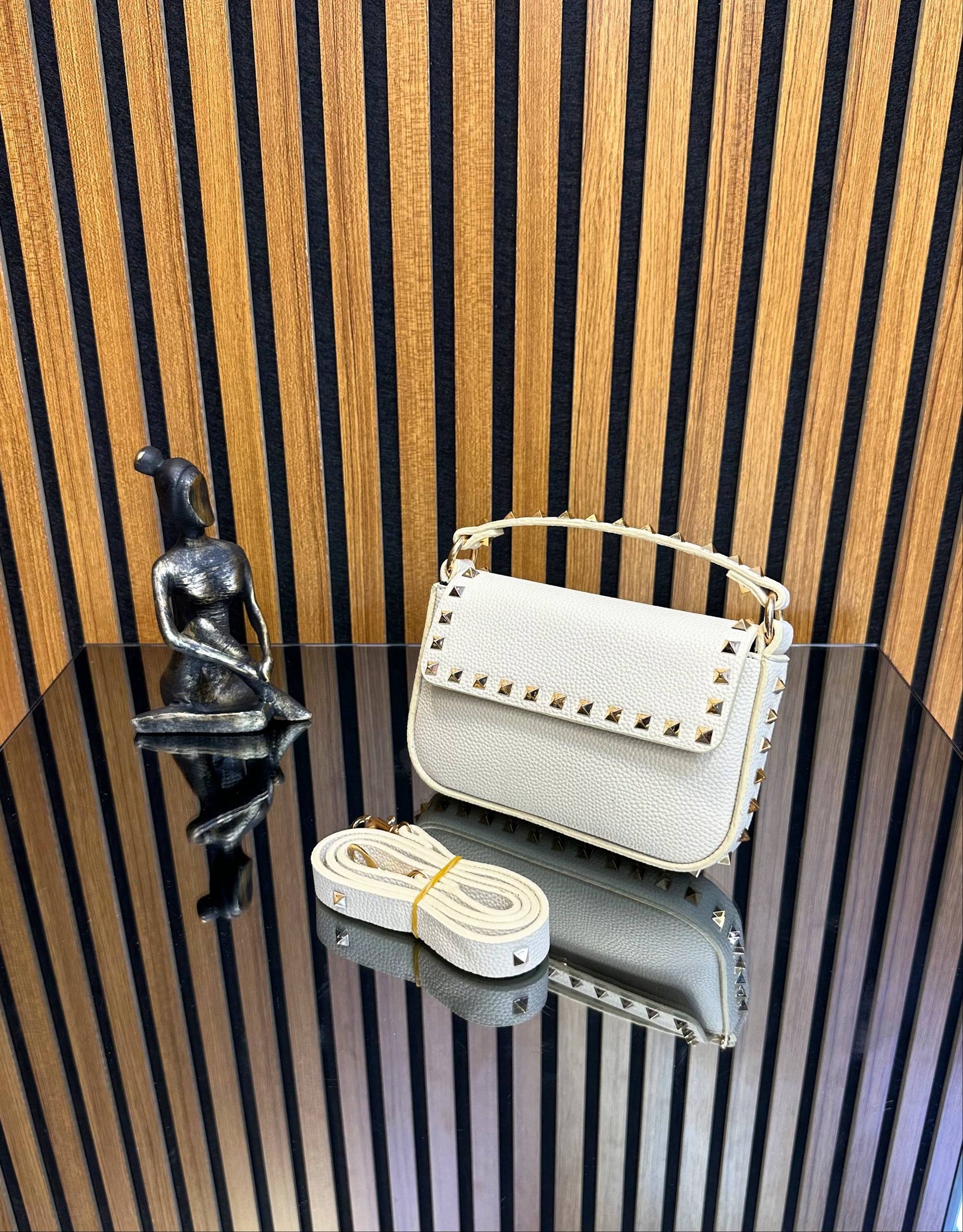 Zamansız şıklığın ikonik temsilcisi. Valentino’nun zarif dokusuyla tasarlanan bu mini çanta, ikonik metal pirinç detaylarıyla dikkat çeker. Hem elde hem omuzda taşınabilen formu, her stile modern bir dokunuş katar.